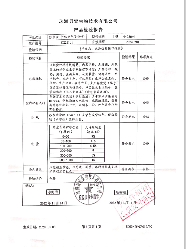 貝索 蘇木素染色液(HE) I型 4x250ml C221101