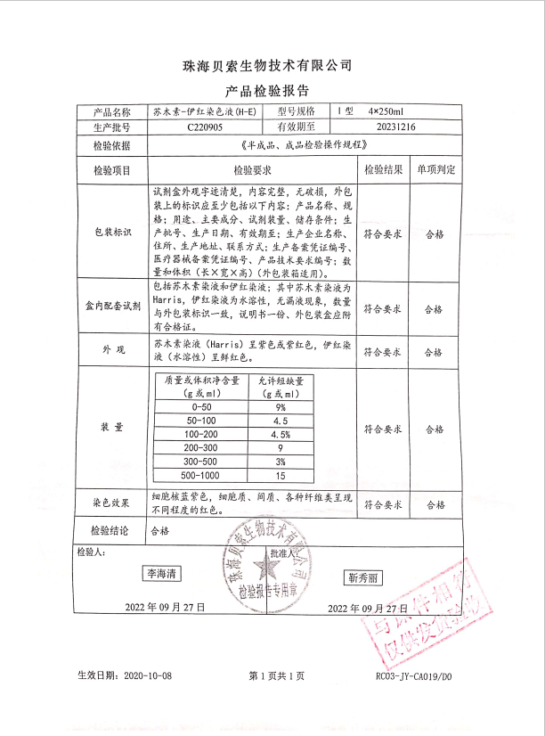 貝索 蘇木素染色液(HE) I型 4x250ml C220905