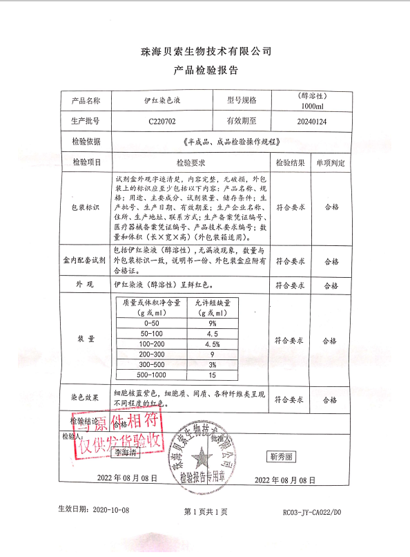 貝索 伊紅染液(醇溶性) 1000ml BA4022 C220702