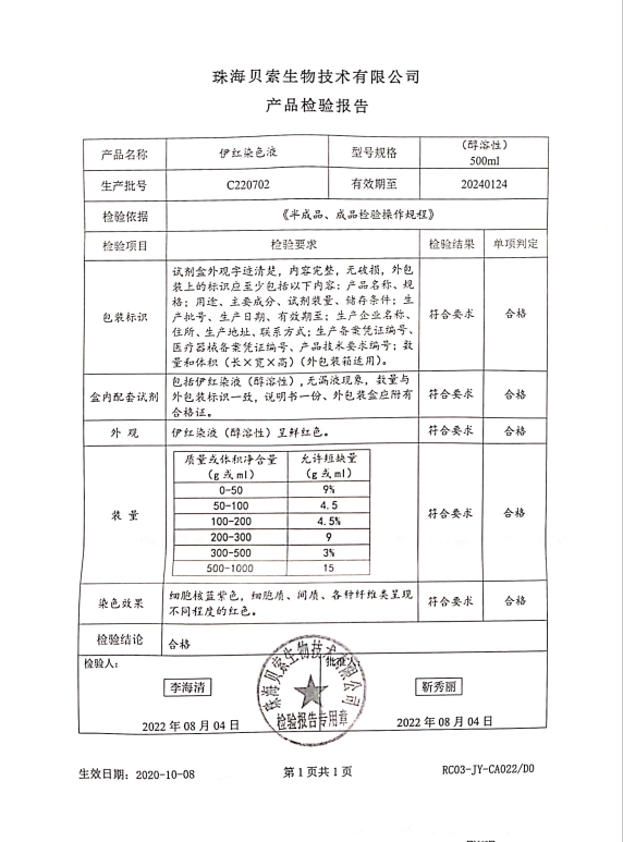 貝索 伊紅染液(醇溶性) 500ml BA4099 C220702
