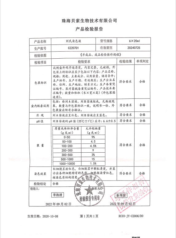 貝索 劉氏染色液 6x20ml BA4031 C220701