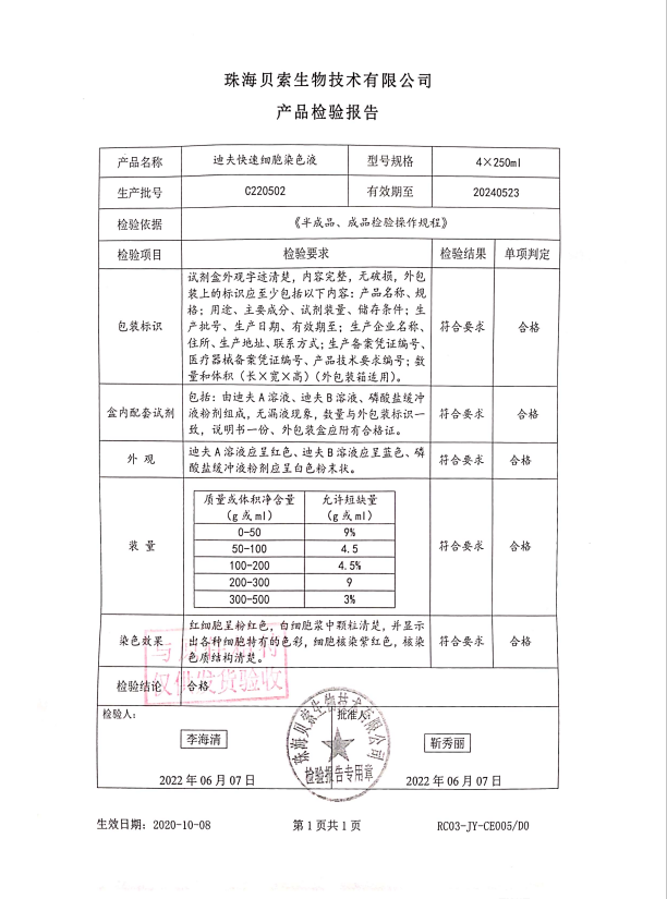 貝索 迪夫快速細(xì)胞染色液 250mlx4 BA4100 C220502