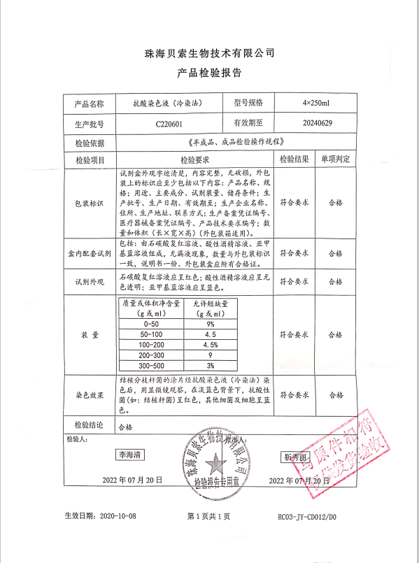 貝索 抗酸染色液(冷染法) 4x250ml C220601