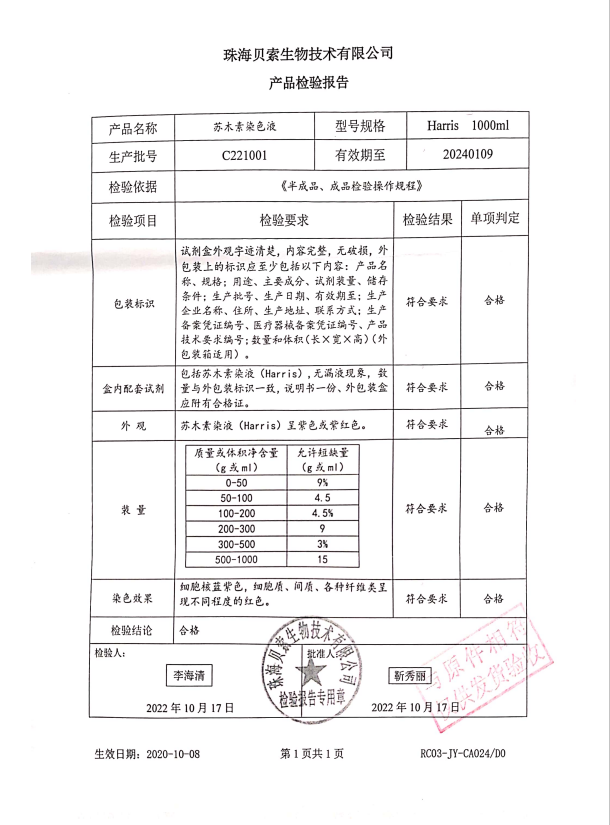 貝索 蘇木素染色液 Harris 1000ml BA4041 C221001