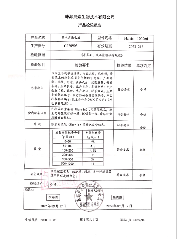 貝索 蘇木素染色液 Harris 1000ml BA4041 C220903