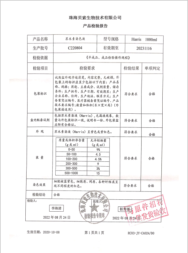 貝索 蘇木素染色液 Harris 1000ml BA4041 C220804