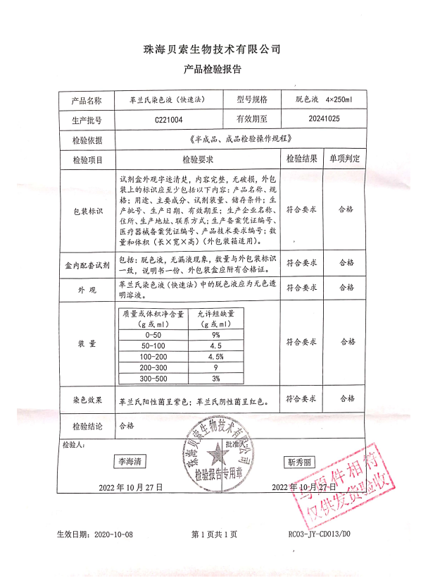 貝索 革蘭氏染色液(快速法) 脫色液 4x250ml BA-4016C C221004