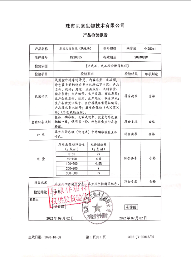 貝索 革蘭氏染色液(快速法) 碘溶液 4x250ml BA-4016B C220805