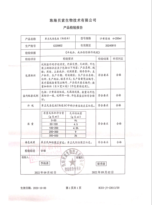 貝索 革蘭氏染色液(快速法) 沙黃溶液 4x250ml BA-4016D C220802