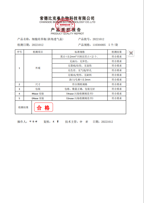 110304005 細(xì)胞培養(yǎng)瓶(斜角透氣蓋) T175 5個袋 20221012