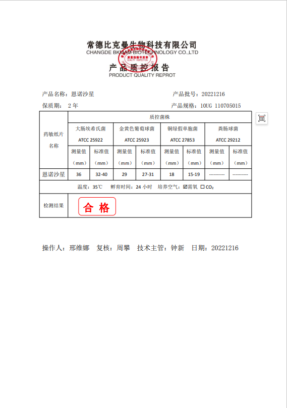 110705015 恩諾沙星 10UG 20片瓶 20221216