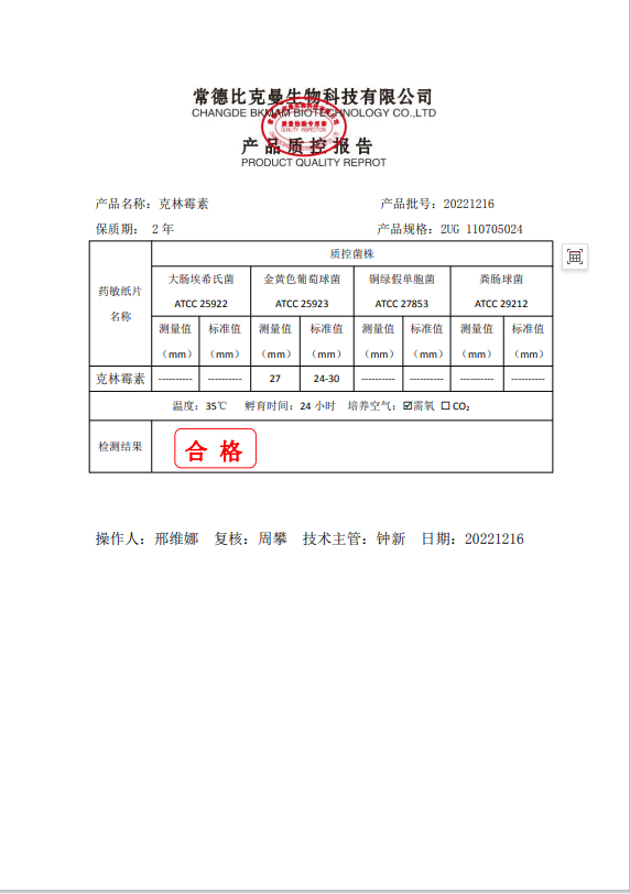 110705024 克林霉素 2UG 20片瓶 20221216