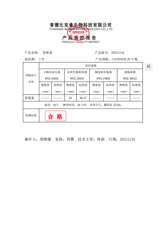 110705036 青霉素 10UG 20片瓶 20221216