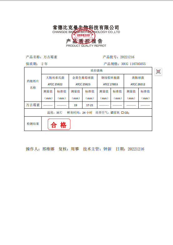 110705055 萬古霉素 30UG 20片瓶 20221216