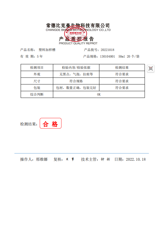 130104001 塑料加樣槽 50ml 20個(gè)袋 20221018