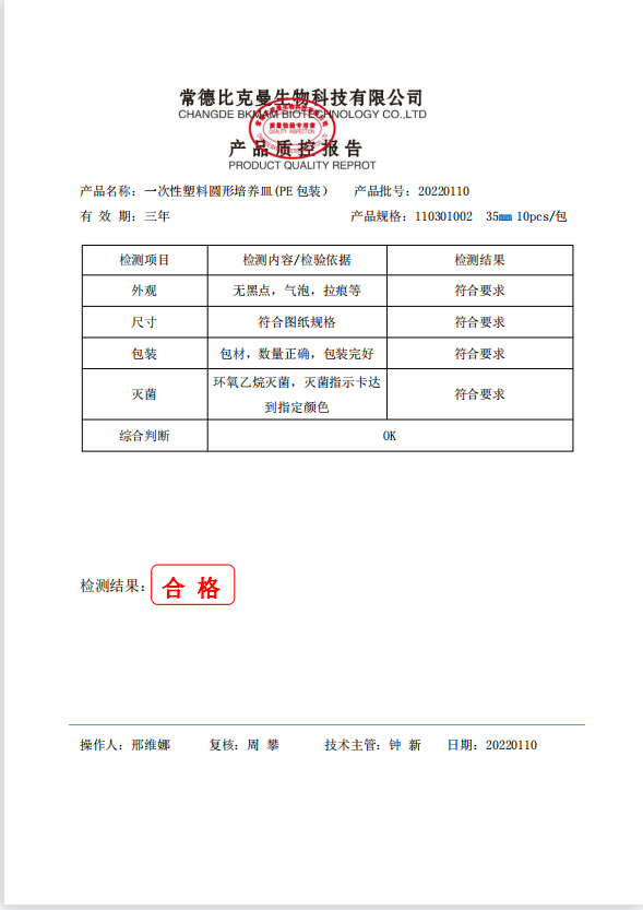 一次性塑料圓形培養(yǎng)皿 (PE塑料包裝) 35mm 10個袋 110301002 20220110