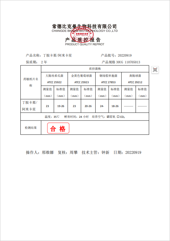 110705013 阿米卡星 30UG 20片瓶 20220919