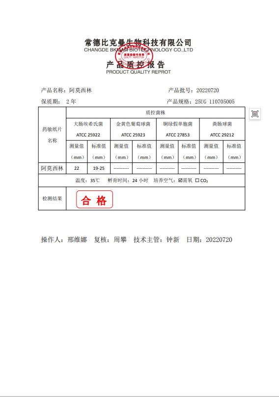 110705005 阿莫西林 25UG 20片瓶 20220720