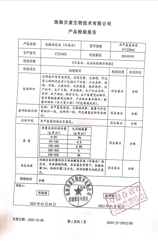 貝索 抗酸染色液(冷染法) 亞甲基藍(lán)溶液 4x250ml C221002