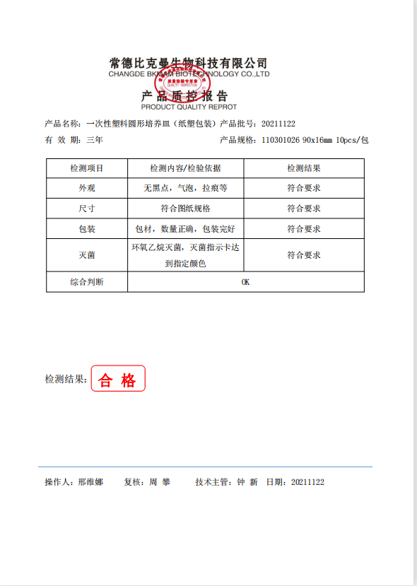 一次性塑料圓形培養(yǎng)皿 (紙塑包裝) 90x16mm 10個袋 110301026 20211122