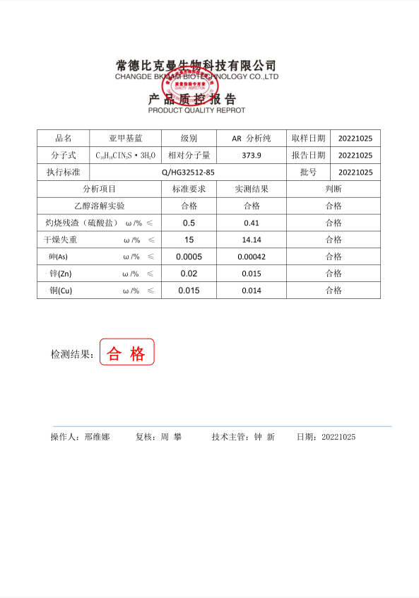 110702059 比克曼生物 亞甲基藍(lán) AR分析純 25g 20221025