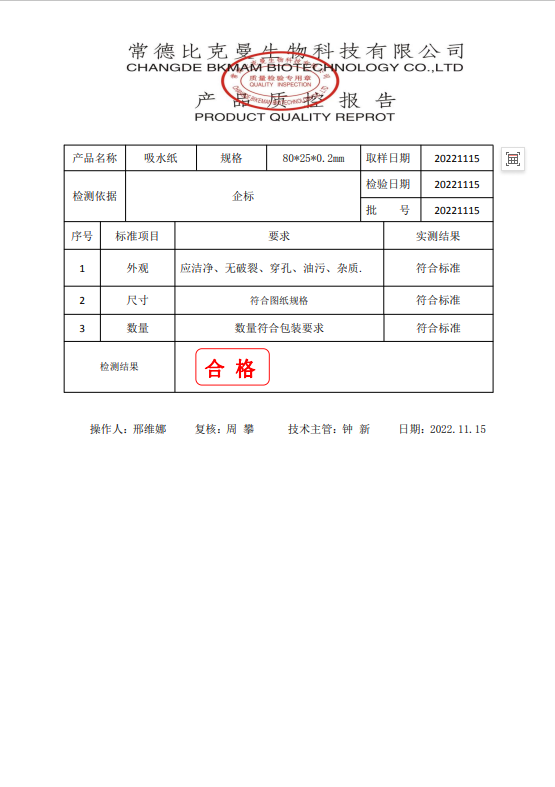 110415014 比克曼生物 吸水紙 80x25x0.2mm 100張盒 20221115