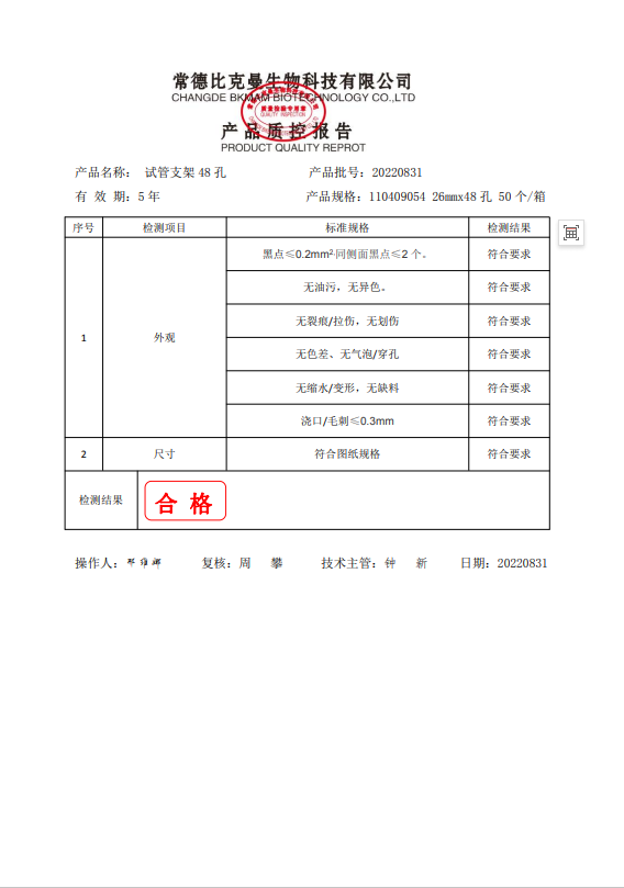 110409054 比克曼生物 試管支架 48孔 26MMx48孔 PP 20220831
