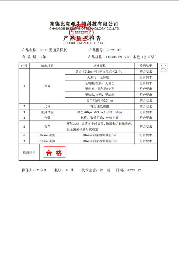 110405069 比克曼生物 HDPE無菌采樣瓶 60mL 本色 (獨立裝) 20221012
