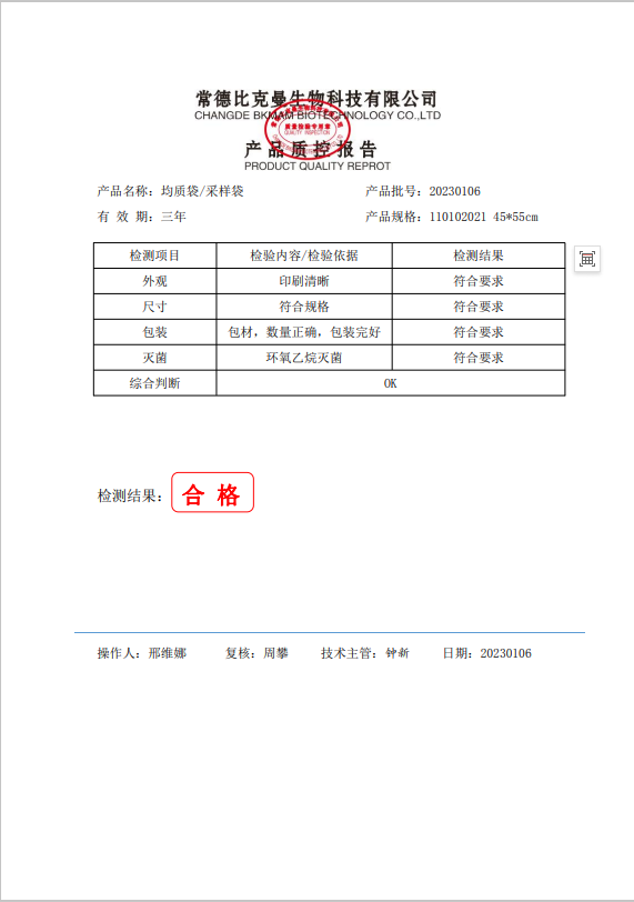 110102021 比克曼生物 無菌采樣袋 45x55 (帶壓條) 50個裝 20230106