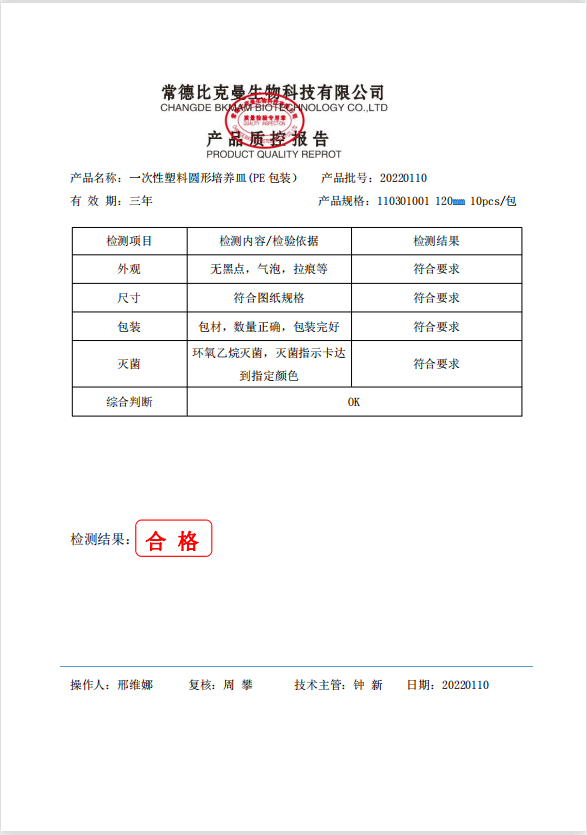 一次性塑料圓形培養(yǎng)皿 (PE 塑料包裝) 120mm 10個(gè)袋 110301001 20220110