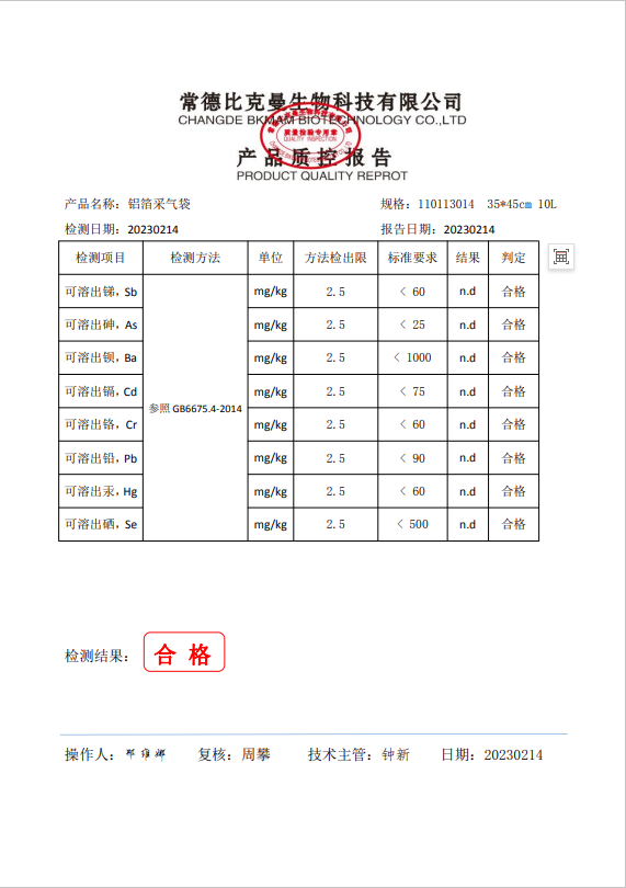 110113014 比克曼生物 單閥門鋁箔采氣袋 35x45cm 10L 20230214