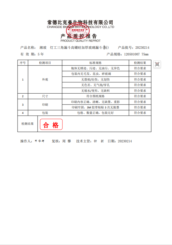 120501007 湘玻 燈工三角漏斗高硼硅加厚玻璃漏斗(短) 75mm 10個(gè)盒 20230214
