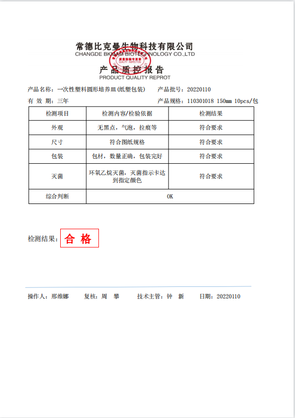 一次性圓形塑料培養(yǎng)皿 (紙塑包裝) 150mm 10個(gè)袋 110301018 20220110