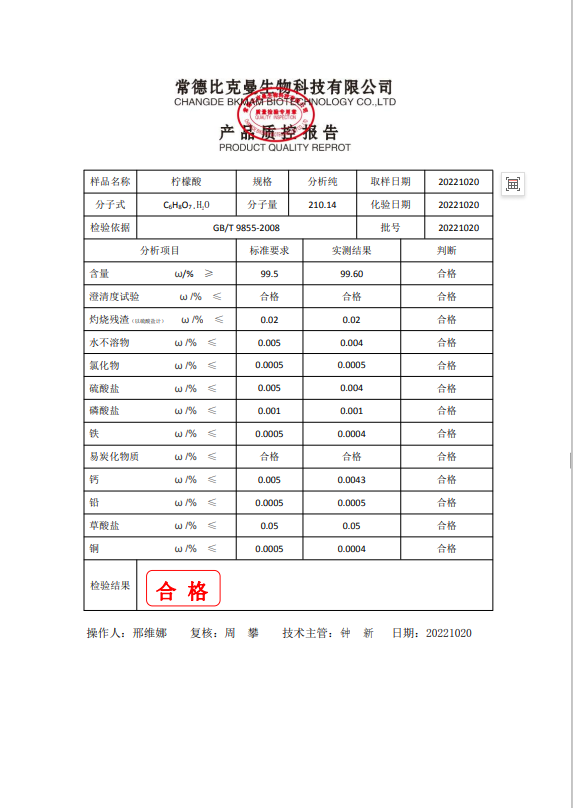 110702037 比克曼生物 檸檬酸 AR分析純 500g瓶 20221020