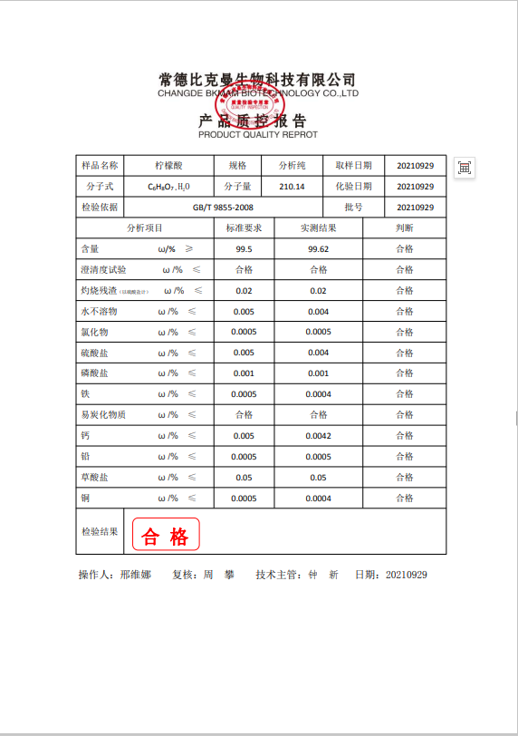 110702037 比克曼生物 檸檬酸 AR分析純 500g瓶 20210929