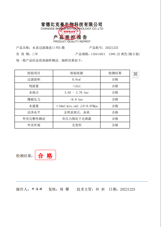 110414011 比克曼生物 水系過濾器 進(jìn)口PES膜 13x0.22 黃色 (獨(dú)立裝) 20221225
