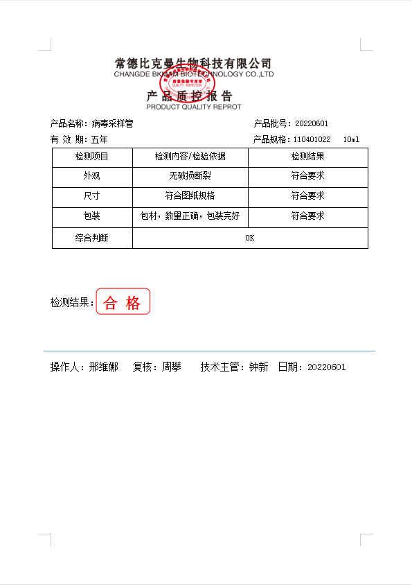 110401022 bkmamlab 病毒采樣管 棉蓋 10ml 50支袋 20220601