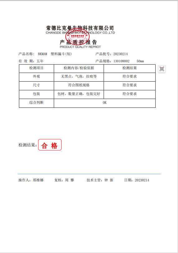 130108002 BKMAM 塑料漏斗(短) 50mm 202302014