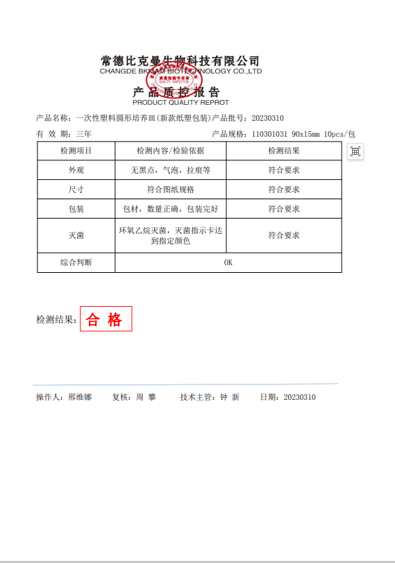 110301031 bkmamlab 一次性圓形塑料培養(yǎng)皿 (新款紙塑包裝) 90x15mm 10個袋 20230310