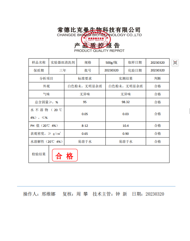 110702045 比克曼生物 實(shí)驗(yàn)器皿清洗劑 500g瓶 20230320