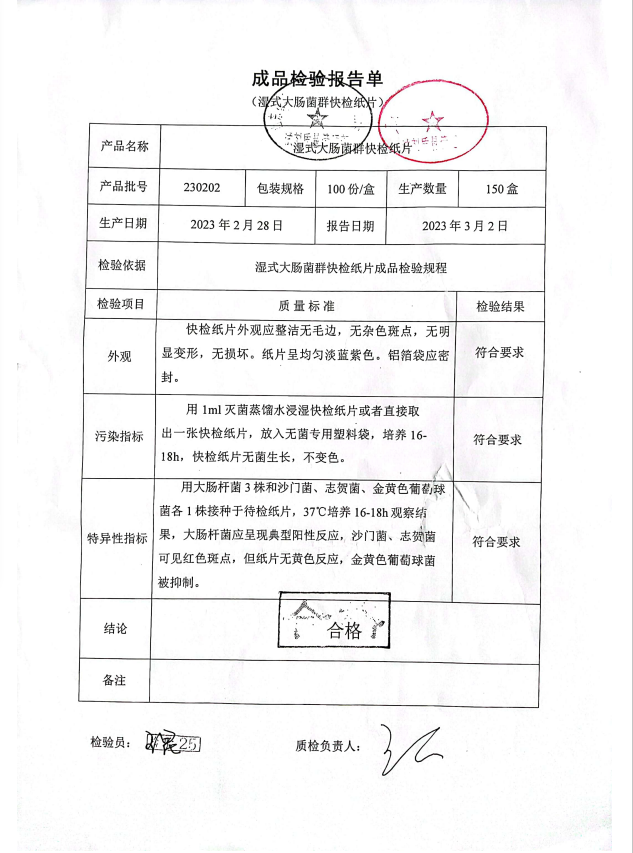 康華 濕式大腸菌群快檢紙片 100份盒 160711012 230308