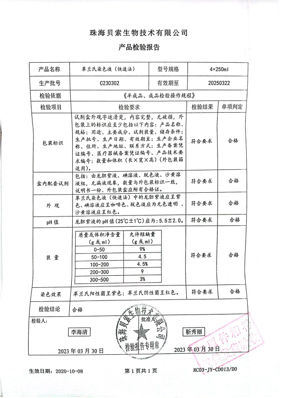 貝索 革蘭氏染色液(快速法) 250ml4盒 BA4012 C230302