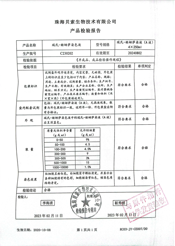 瑞士-姬姆薩染色液 (A液) 4x250ml C230202