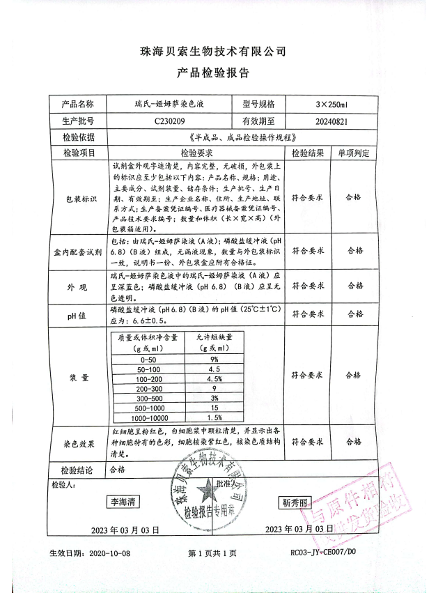 貝索 瑞氏-姬姆薩染色液 250mlx3 BA4010 C230209