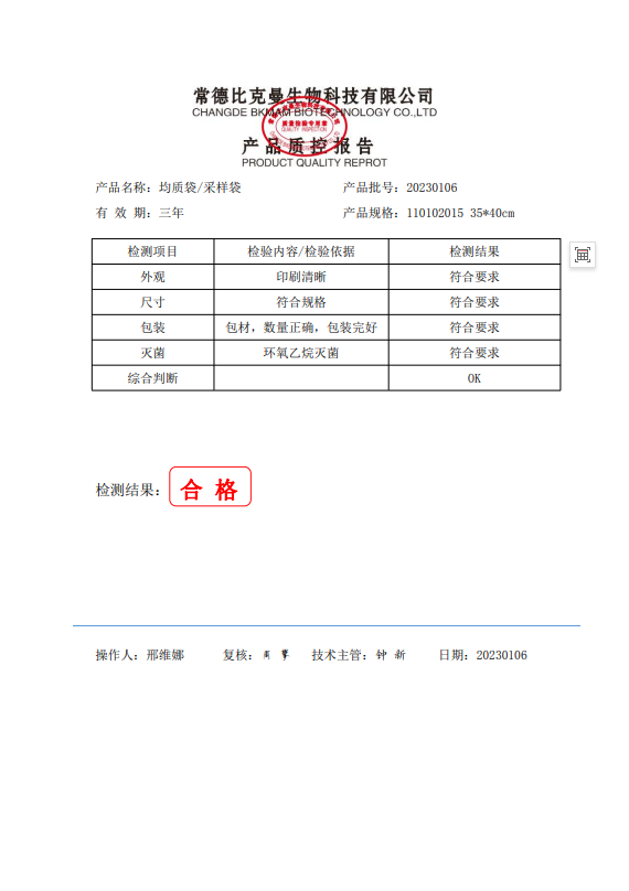 110102015 比克曼生物 立式無菌采樣袋 35x40 (帶壓條) 50個裝 20230106
