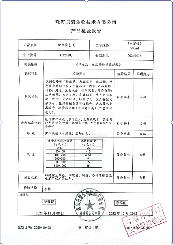 貝索 伊紅染色液(水溶性)500ml BA4098 C221103
