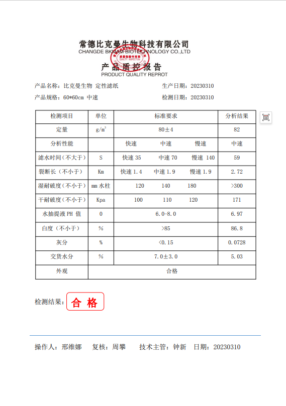 110416001 比克曼生物 定性濾紙 60x60cm(中速) 20230310