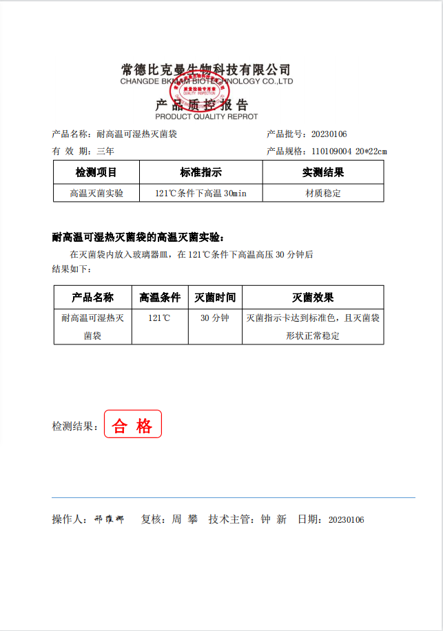 110109004 比克曼生物 可濕熱滅菌高溫袋 20x22cm 100個(gè)袋 20230106