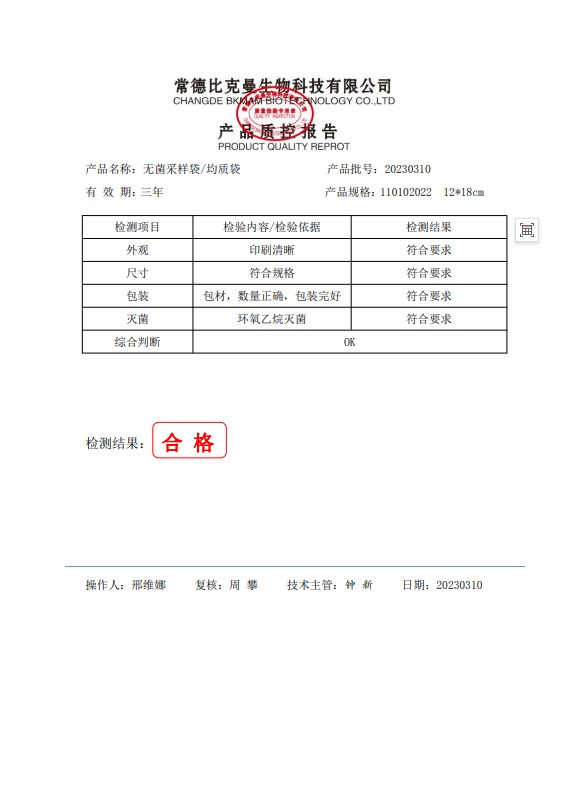 110102022 bkmamlab 無(wú)菌采樣袋 12x18 (帶壓條) 100個(gè)裝 20230310