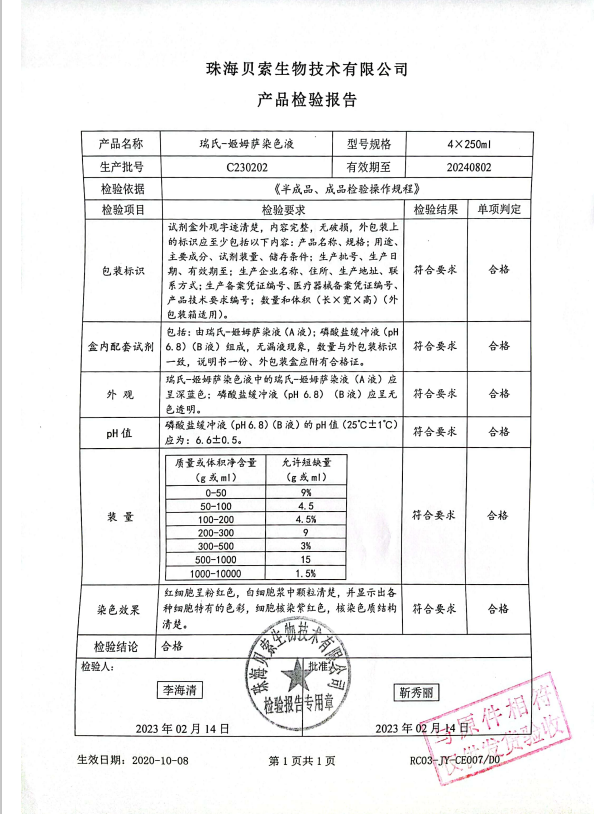 貝索 瑞氏-姬姆薩染色液 250mlx4 C230202